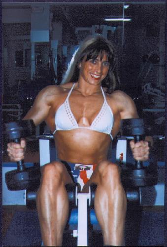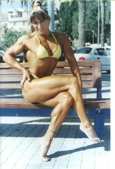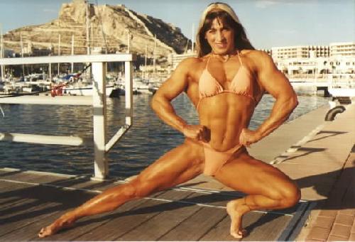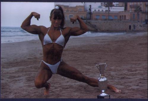 Paloma from Madrid, Spain is another Spanish beauty! Bodybuilding for 7 years she stays in top shape all year round. In 1997 she won the overall in the Spain national bodybuilding championship. To date she has proven she is a very formidable foe in the ring and really knows how to give anyone a good fight. She plays semi-pro soccer and loves to ride on her motorcycle. She will be featured in Mass Muscle videos in the future, but for now if you want to meet her in Europe or when she travels to the USA for private wrestling sessions email her at mixedfight@hotmail.com to ask about her styles of wrestling which include, competitive, semi-competitive, playful fantasy roleplay, lifts and carries, posing muscle worship, BE SURE to tell her Mass Muscle Ed told you. She has 8x10 autographed photos for sale so ask her about that also. This is one fantastic lady with great beauty!!
