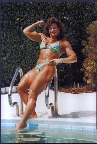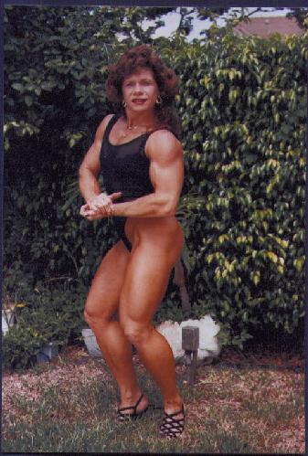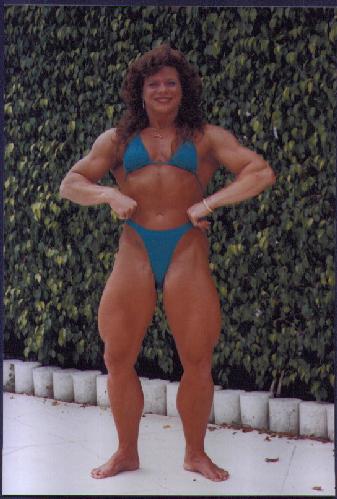 Michelle Earheart 5'4" Off season 175 Contest weight 155 Biceps 17" Calves 17" Quads 27"