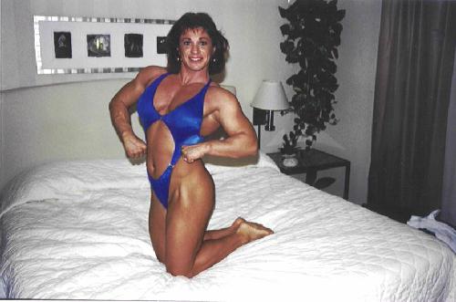 Mass Muscle has been graced by meeting Kathy Connors and doing this great wrestling posing combo video. Kathy is a very beautiful woman and has a body that stops traffic! Her legs and glut's are magnificent and her upper body is hard and muscular. She begins this video with some dynamic posing and flexing to some great Hawaiian music showing her muscular body very sensually, Her legs are thick and hard with a wide flair to her quads and diamond shape calves. Kathy wears three outfits during her posing segments which last for around 20 minutes. Each outfit is sexier then the next! Then its on to some domination type wrestling. You will see great grapevines showing Kathy's beautiful hamstrings and glut's. Headlocks that almost takes this poor guys head off and leaves him semi-unconscious. Scissors hold both body and head leave vlad stunned and completely helpless. Also some great humiliation verbiage tactics by Kathy is a real treat as well.This video is 40 minutes of beauty, grace, and exquisite muscle flexing action and cost $50.00 and as always buy this video and choose one free from videos 101-380 On Line Catalog.