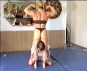 and puts some GREAT scissors holds on luis that makes him submit in seconds. She has also developed some of her own holds and makes luis scream in pain several times. Grapevine holds showing kathys beautiful muscular legs and glutes, head and bodyscissors, combo holds,