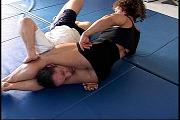 Guys, I have to tell you I have never seen such a massively muscle powerful woman like Colette squeeze a man as intensely and with such destructive power as I witnessed in this videos. For real now no bull, Colette knocks Charlie out three times with the most awesome, power driven, destructive, full out vibrating head scissors you will ever see. It is just to good to be true, this video without any doubt is a scissors lovers dream come true. Head scissor after head scissor leave Charlie left in a daze and at times out cold. Charlie is know for being a man who never submits and I have to hand it to him in this video even though he was knocked out three times he never gave up. Great grapevines, head locks, and various other holds tops off this outstanding video. Colette is just to awesome to watch!!!!