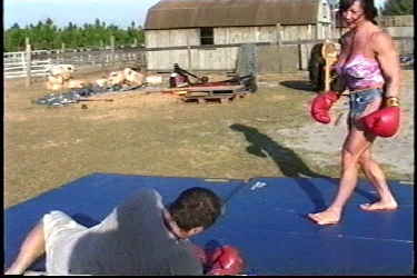 Debra challenges vlady to several different strength contest to finally once and for all shut this man up. First it is boxing in which it is mostly body punching but for real. Vlady is knocked down 4 times throughout the match and has no chance against Debra's punches. Debra is punched real hard in the abs and she doesn't even feel it.. Then it is arm wrestling and vlady is beaten several times with both arms. Then to some sit ups and this contest is basically no contest as Debra just blows him away. then the weights and again vlady is humiliated. Then its onto some great wrestling and debra's own style of beating a man senseless, she is just to much for any man and vlady is beaten unconscious in this match..